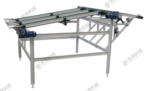 適用于背涂膠硅酸鈣板、水泥纖維板、玻鎂板等進行流水作業時的工件輸送。采用尼龍輪輸送,既能減少與膠面的接觸面積還能保證板材的平穩輸送。